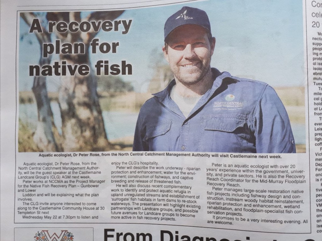 The speaker is Peter Rose from the North Central Catchment Management Authority, an expert in native fish.